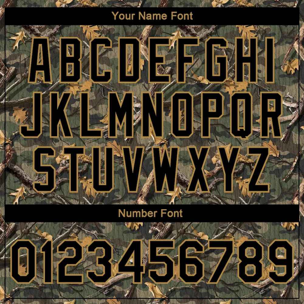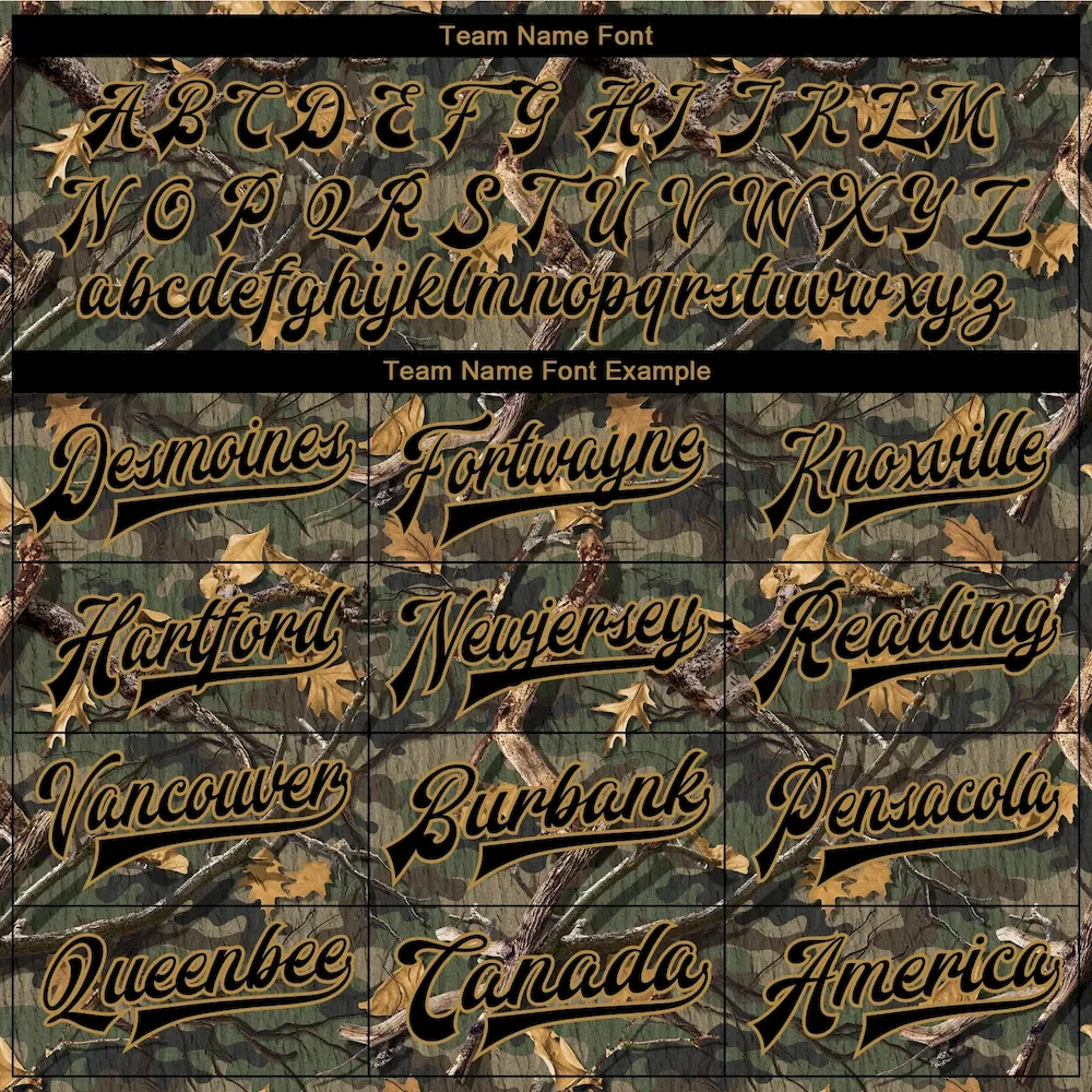 Custom Camo Black-Old Gold Classic Wood Camouflage 3D Bomber Full-Snap Varsity Letterman Salute To Service Jacket