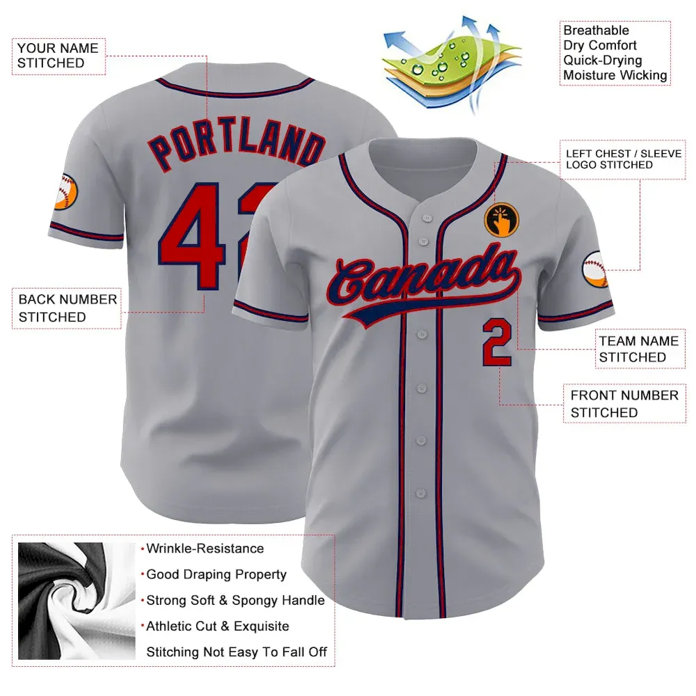 Custom Gray Red-Navy Authentic Baseball Jersey