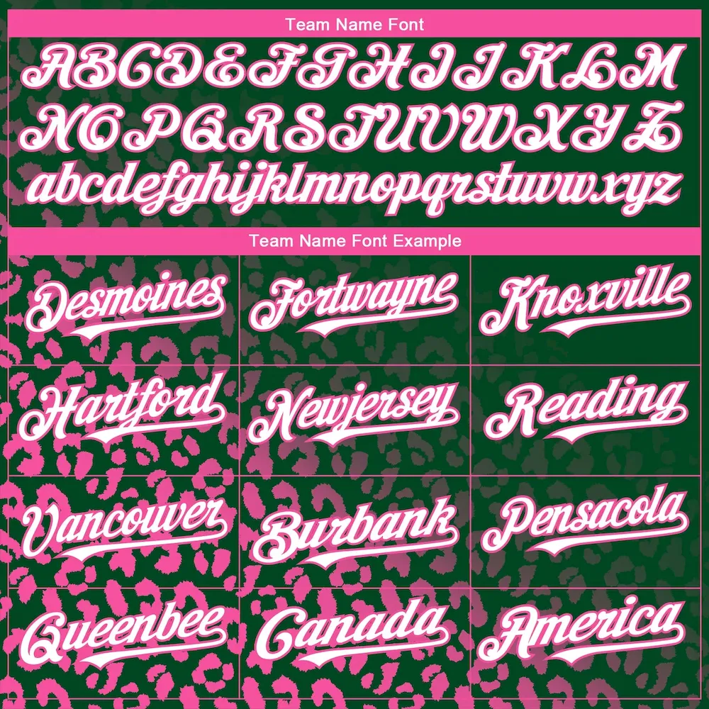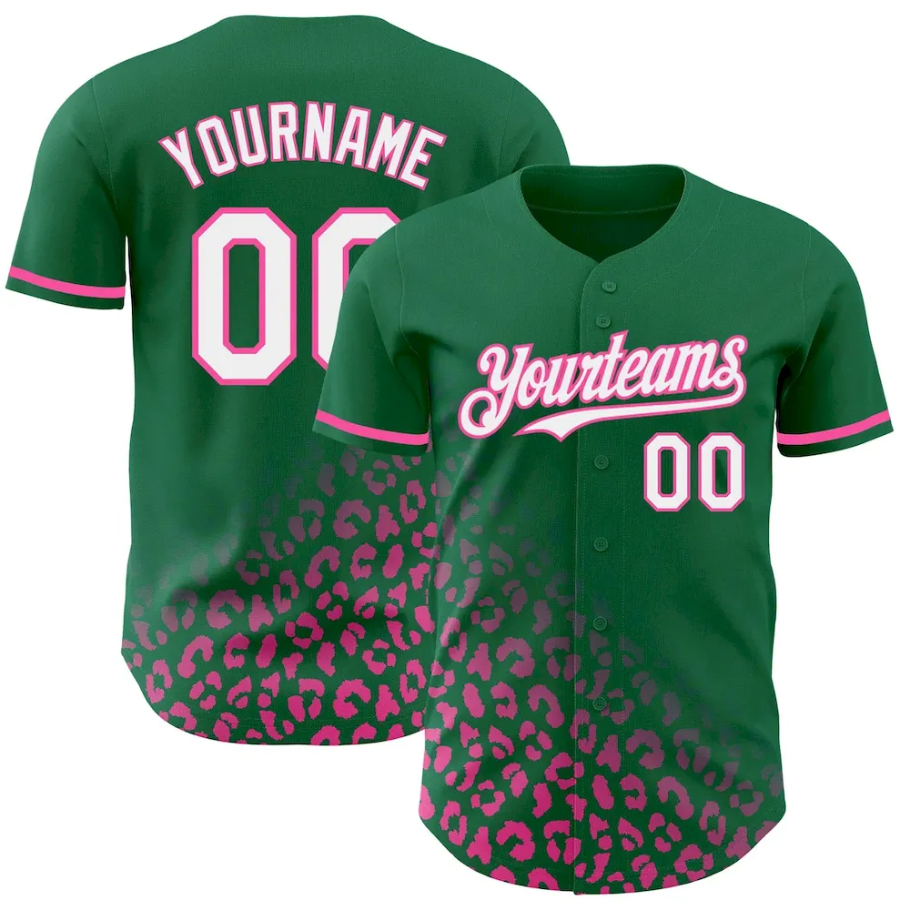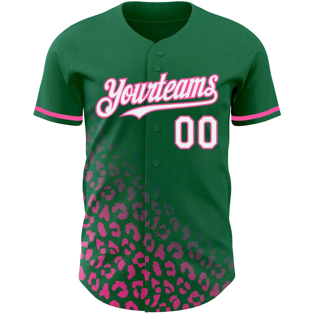 Custom Kelly Green White-Pink 3D Pattern Design Leopard Print Fade Fashion Authentic Baseball Jersey