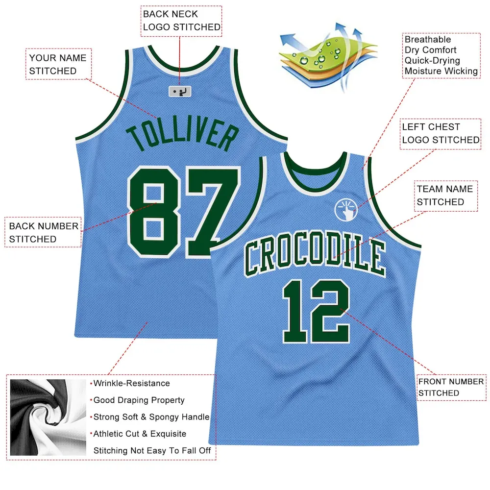 Custom Light Blue Green-White Authentic Throwback Basketball Jersey