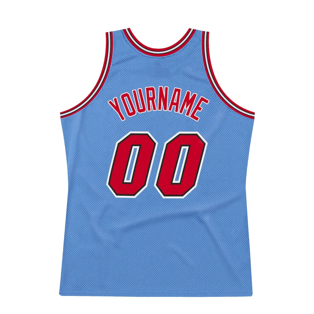 Custom Light Blue Red-Black Authentic Throwback Basketball Jersey