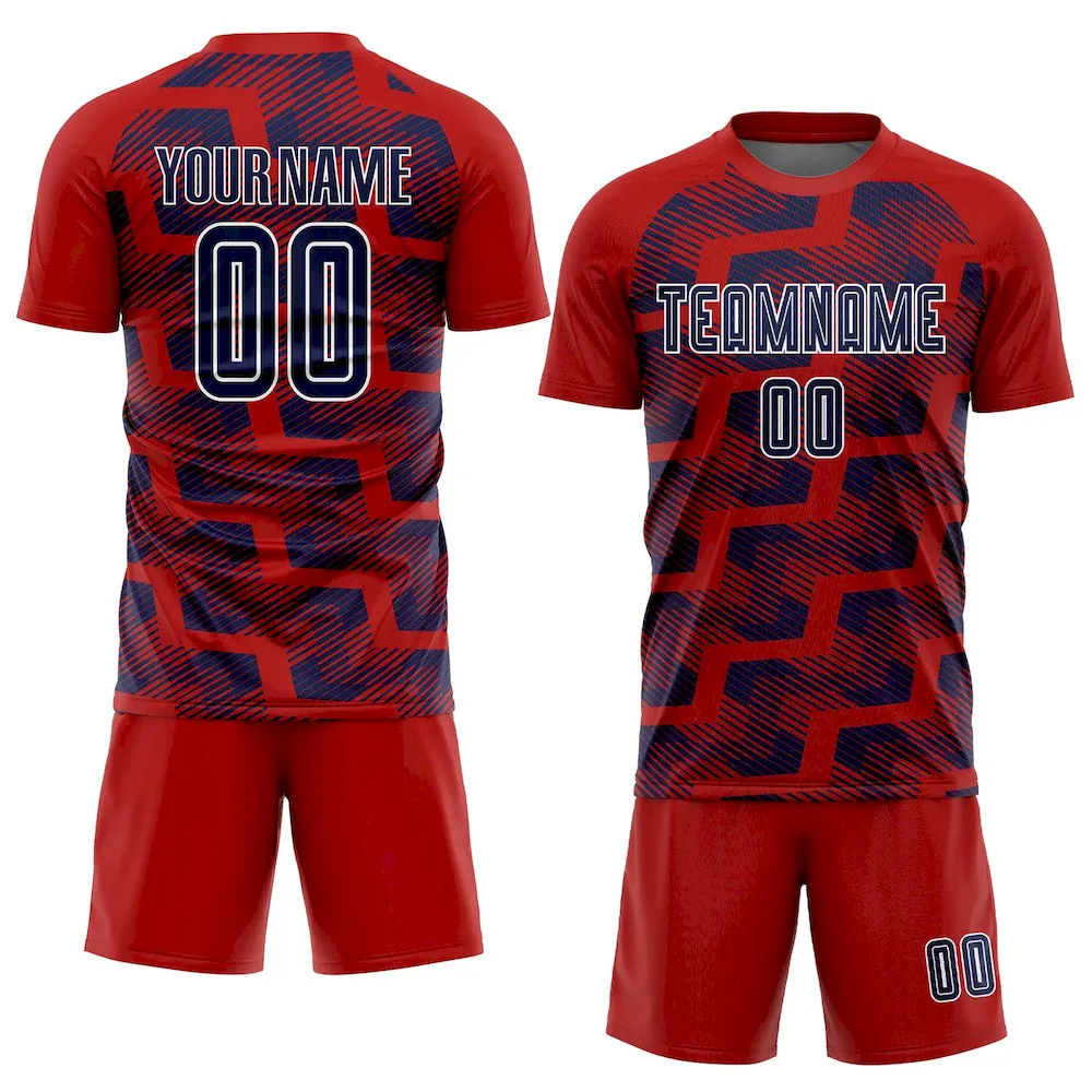 Custom Red Navy-White Line Sublimation Soccer Uniform Jersey