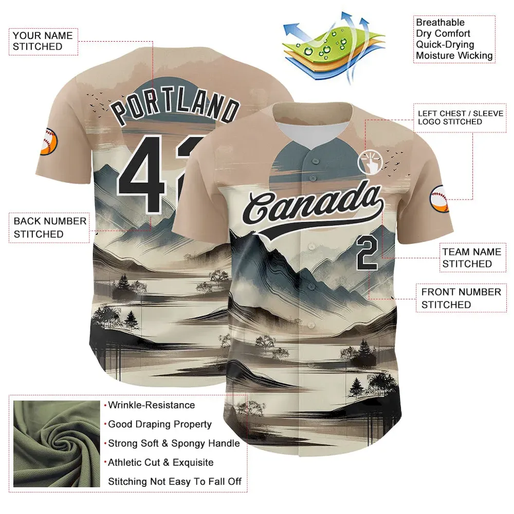 Custom White Black 3D Pattern Design Mountains Landscape Authentic Baseball Jersey