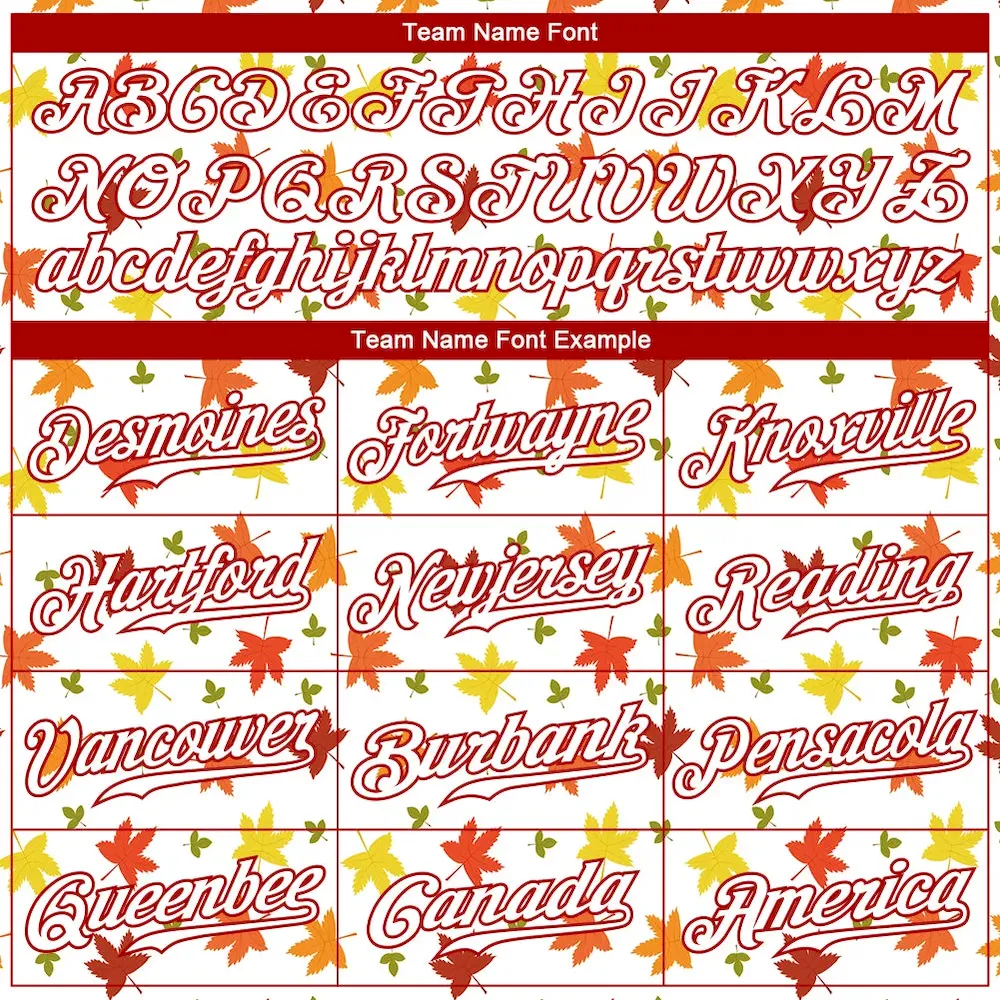 Custom White White-Red 3D Pattern Design Autumn Leaves Authentic Baseball Jersey